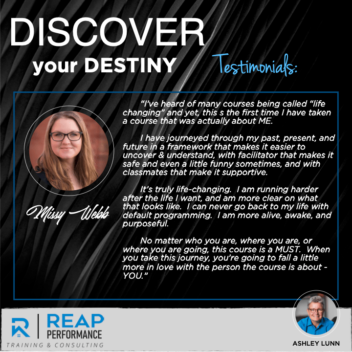 Discover Your Destiny is your roadmap to uncovering your purpose and committing to fulfilling your destiny. Through a combination of lectures, demonstrations, role-playing scenarios, and guided self-study assignments, you’ll inch closer to understanding your unique purpose. Remember, only you can fulfill your purpose, and only you can unearth what that purpose truly is.
